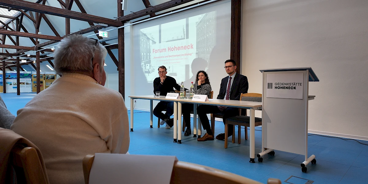 Die Gedenkstätte Hoheneck wurde am 13.03.2026 zum Schauplatz einer intensiven Auseinandersetzung mit der Vergangenheit sowie der Zukunft unserer Demokratie. Zum ersten öffentlichen „Forum Hoheneck“ kamen nicht nur interessierte Bürgerinnen und Bürger zusammen, sondern auch zwei Schulklassen der Altstadtschule und des Carl-von-Bach Gymnasiums Stollberg, um gemeinsam mit der Sächsischen Staatsministerin der Justiz, Frau Prof. Constanze Geiert, ins Gespräch zu kommen.